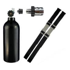 Drysuit Inflation Set contain Aluminum Cylinder 1.5 Liter with Valve W21,8 (Inert Gas), 1st StageW21,8 (Inert Gas) intergated OPV and Mounting Straps for Installation on Backplate, Book screw and tool