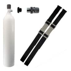 Drysuit Inflation Set contain Aluminum Cylinder 1,5 Liter with Valve G5/8, 1st Stage intergated OPV and Mounting Straps for Installation on Backplate